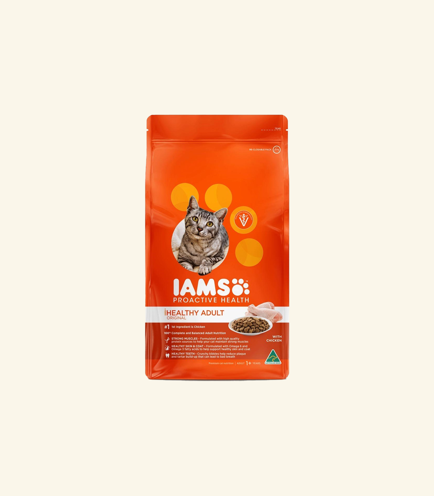 Iams? ?ProActive Health? Adult Rich in?Roast Chicken (40% chicken & turkey) is a complete and balanced cat food for adult cats.