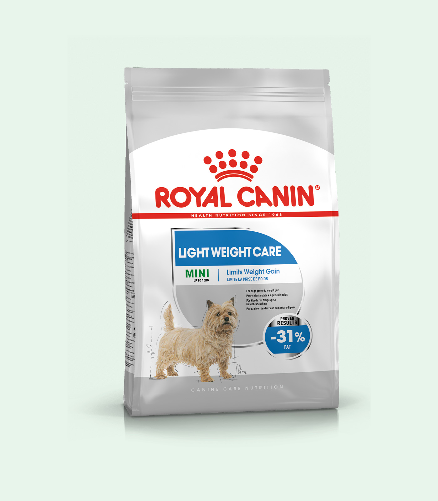 For adult and mature small breed dogs over 10 months old with a tendency to gain weight. Size Health Nutrition Small dog food formulas are so much more than just a small kibble. Small dogs need more energy than big dogs, and they have a shorter and more intense growth period. Plus, they typically live longer than large dogs and have a more finicky appetite. Royal Canin Small formulas are designed to meet the specific needs of small dogs throughout every stage of their life.