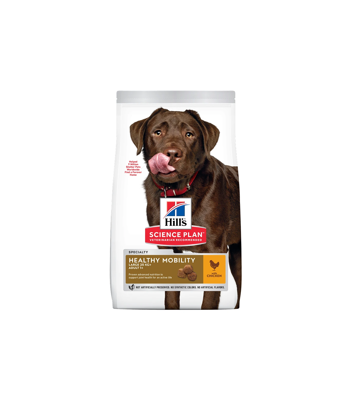 HILL’S SCIENCE PLAN Healthy Mobility Large Breed Adult dog food with Chicken provides your adult dog with advanced nutrition to support joint health and improve mobility in large dogs. The precisely balanced formula contains EPA from fish oil helps keep joint cartilage healthy. This delicious dog food contains building blocks of healthy cartilage, glucosamine and chondroitin. This dog food is formulated with decades of cutting-edge research to be a great-tasting meal a large adult dog can truly enjoy. There?s more to love with the new look of SCIENCE PLAN. Some of our products also have new names, new kibble shapes & new formulas.