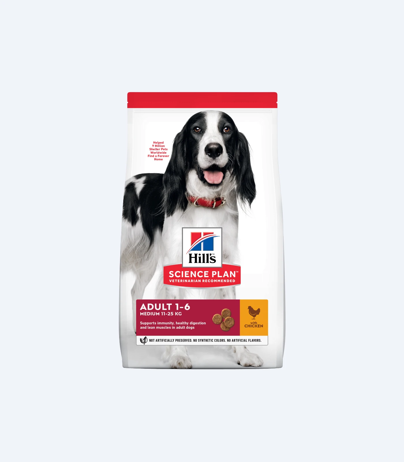 When your dog is in the prime of their life, he or she needs a quality dog food that keeps up. HILL’S SCIENCE PLAN Adult dog food with Chicken uses a high quality protein source for lean muscles, fiber for healthy digestion and omega-6s for a beautiful coat. Specially formulated to make grown dogs come running for mealtime, this adult food provides the right balance of nutrients to help your grown-up dog live a happy, healthy life. There?s more to love with the new look of SCIENCE PLAN.