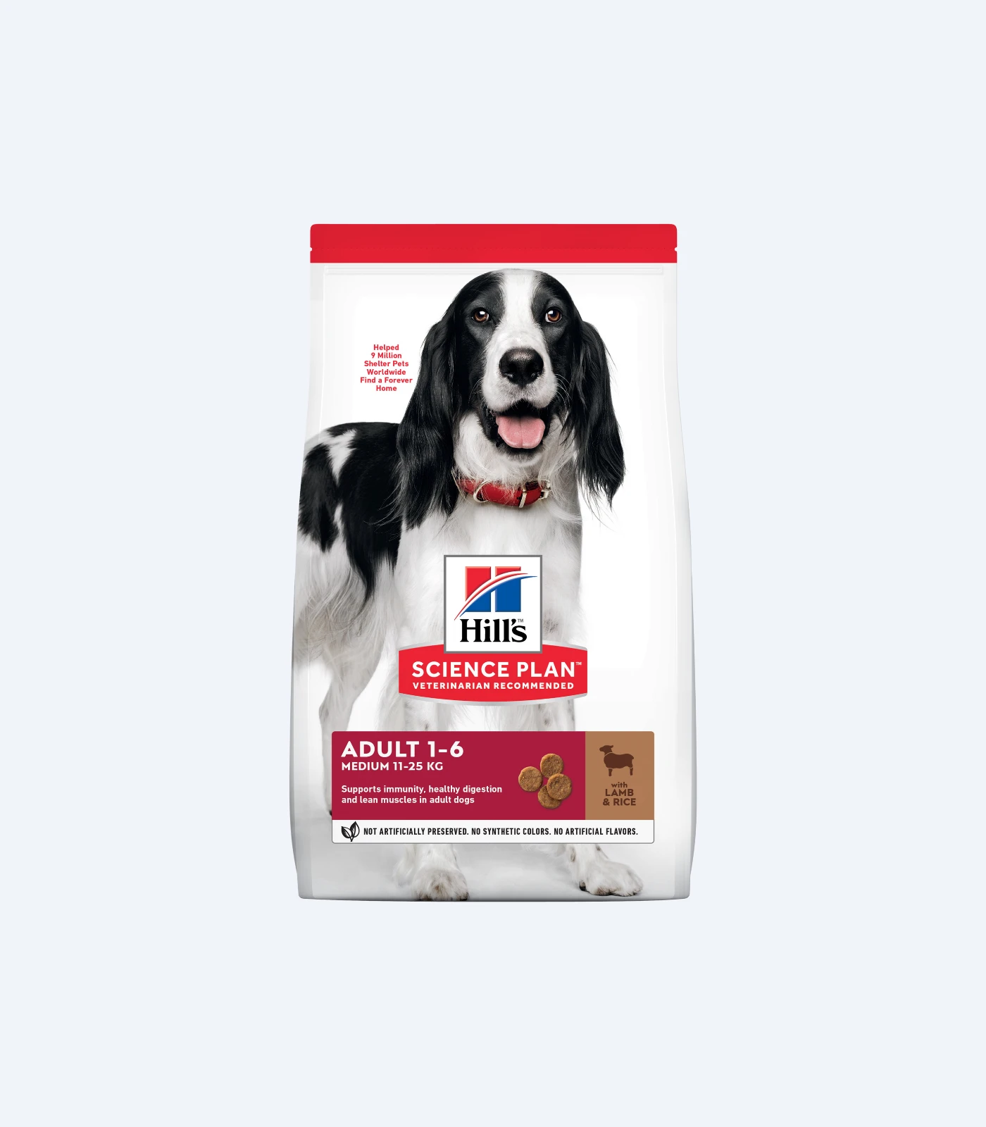 When your dog is in the prime of their life, he or she needs a quality dog food that keeps up. HILL’S SCIENCE PLAN Adult dog food with Lamb & Rice uses a high quality protein source for lean muscles, fibre for healthy digestion and omega-6s for a beautiful coat. Specially formulated to make grown dogs come running for mealtime, this adult food provides the right balance of nutrients to help your grown-up dog live a happy, healthy life. There?s more to love with the new look of SCIENCE PLAN.