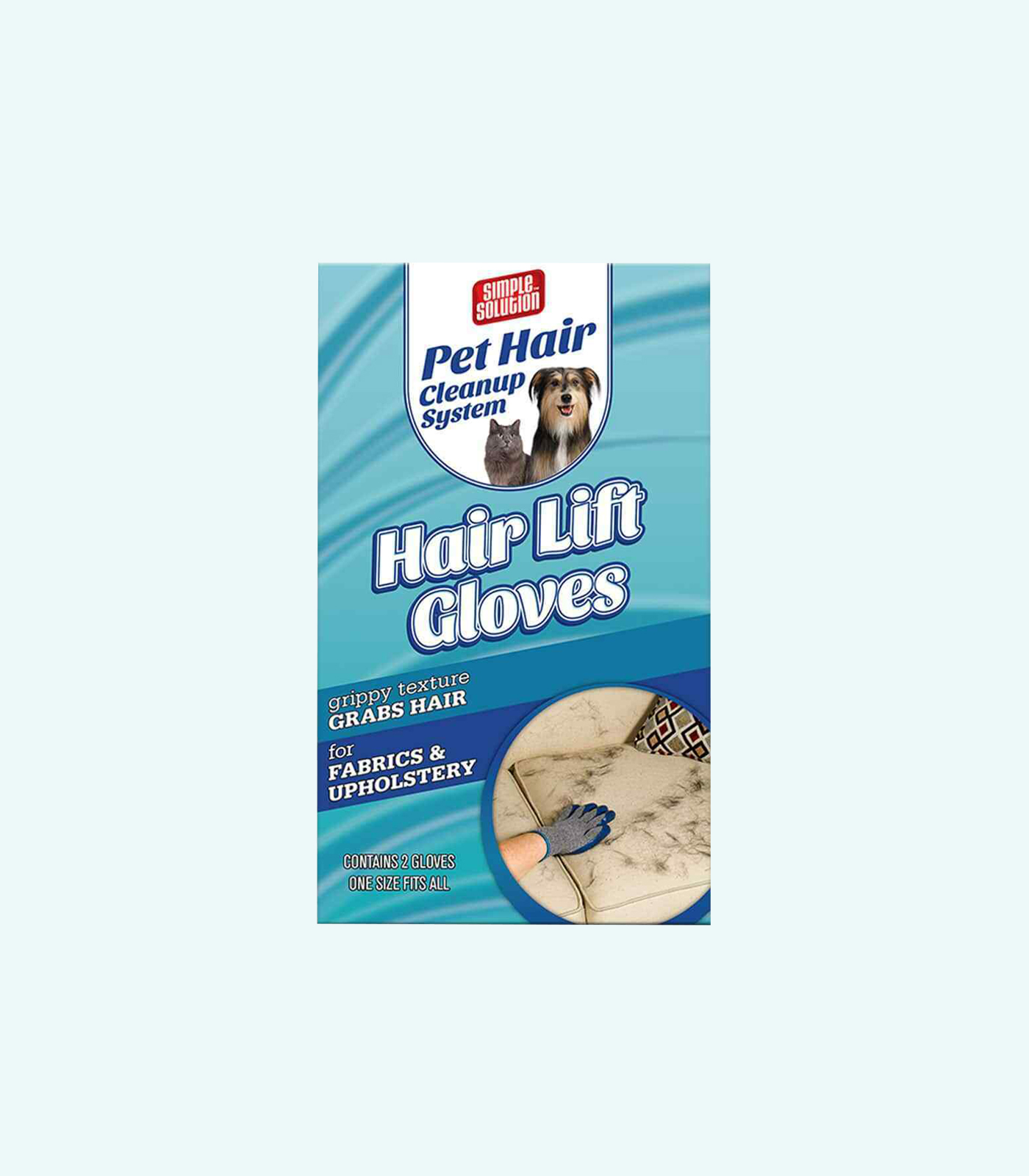 Simple Solution Hair Lift Mitts are rubberised gloves to remove pet hair from difficult to clean surfaces.