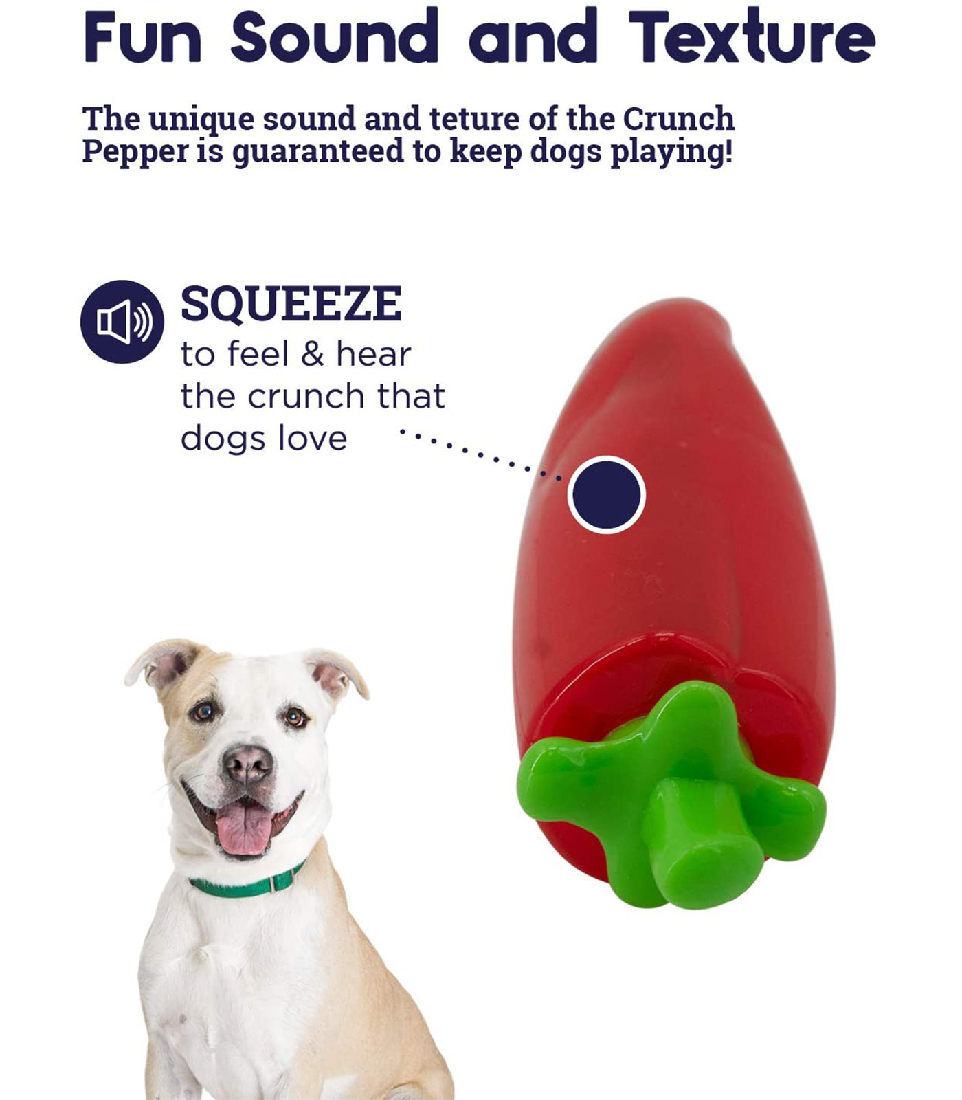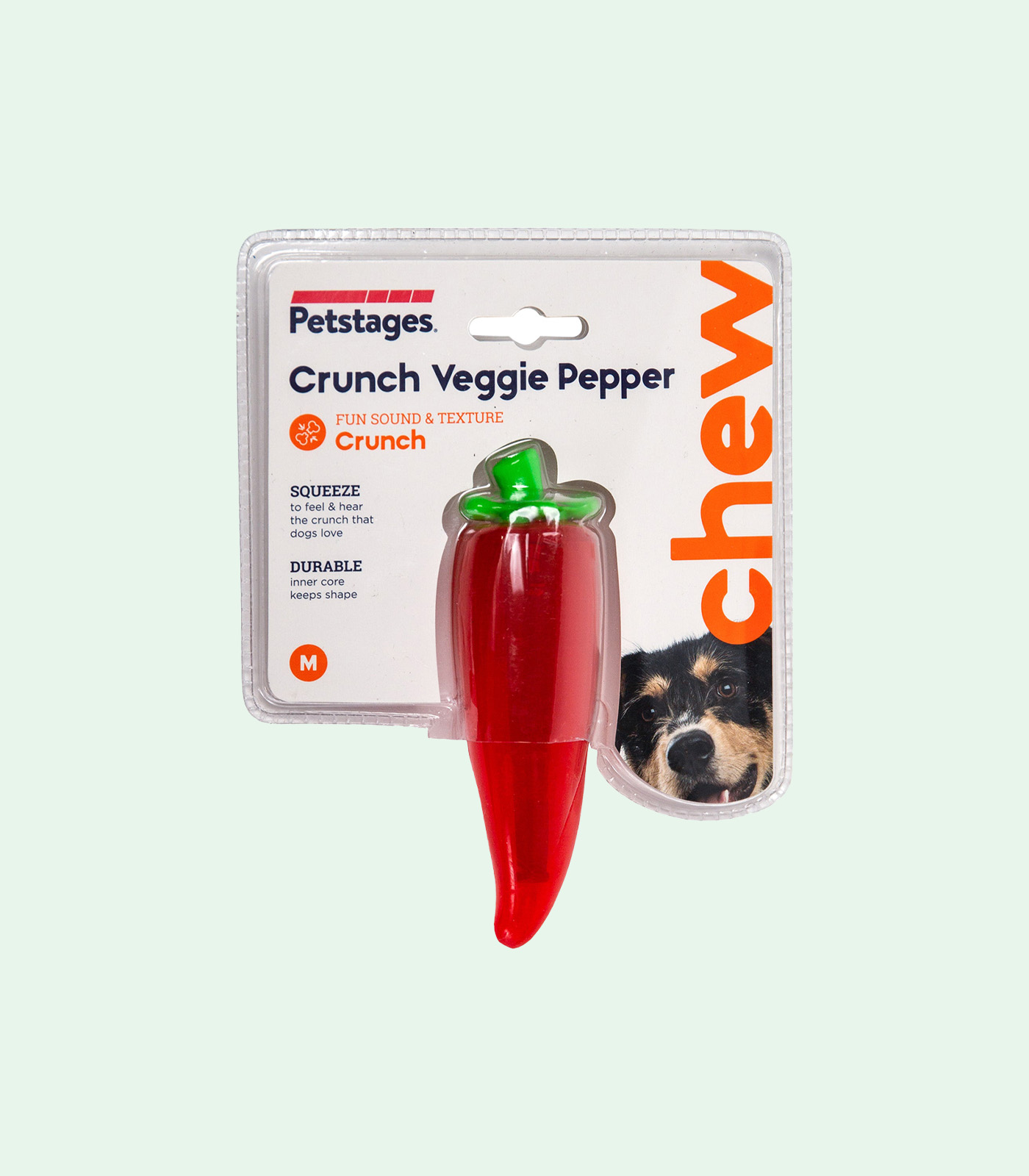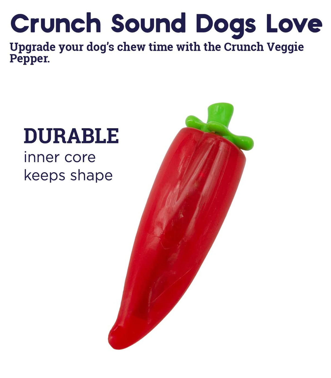 Spice up your dog’s playtime with the Crunch Veggie Pepper dog chew toy. Made with a crunchy sound and texture that dogs can’t resist, this toy is guaranteed to keep your dog busy. Unlike other chew toys, the Crunch Veggie Pepper features a durable inner core that ensures it will keep its shape and structure for long-lasting play.